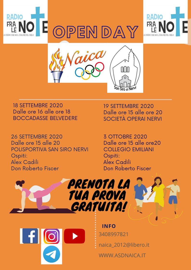 ECCO LE DATE DEI NOSTRI OPEN DAY DOVE POTETE PROVARE TUTTE LE NOSTRE DISCIPLINE! PRENOTATEVI IN TANTI!